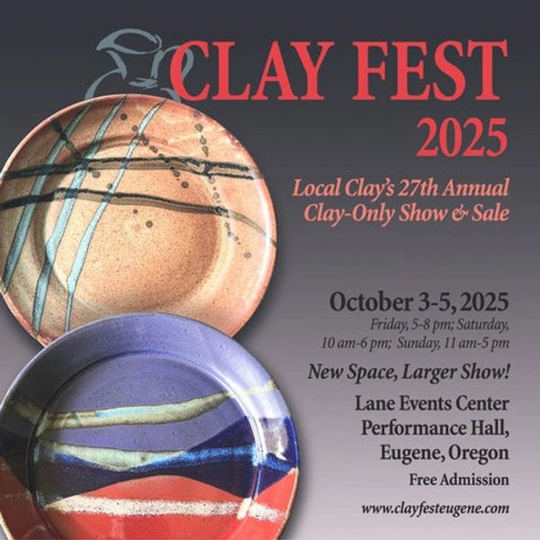If you have been to Clay Fest before, we've moved! You can look for us in the Performance Hall at the Lane Events Center (the fairgrounds). We're a week early this year, not sharing with the Home Show. Hope to see you there.